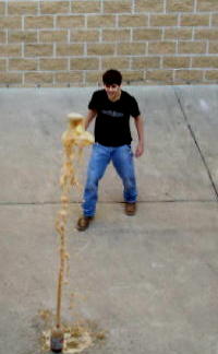 | Ansel Payne's 9th Grade CHS science class learned about chemical reactions and "state changes" by blowing stuff up, in this case making a big gusher with common ingredients.