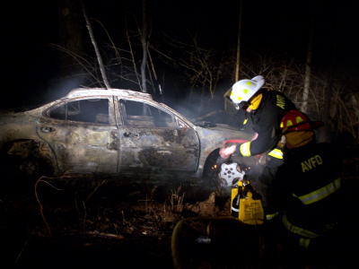![]() Arnoldsburg firemen extinguish car-woods fire...