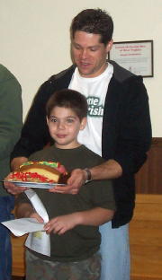 Winners of the contest were John and David Bugby (pictured left) with their hot dog and french fries cake. After the cakes were judged they were auctioned-off as a fundraiser for the pack with over $250 raised ![]()