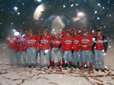 (Photos by Kelley Houchin) Today's photos from Patty Haught showing Calhoun High baseball players and fans suffering through snow and cold Thursday, brought a chill, but Friday night the players traveled to Sissionville to play a double header, and it "took the cake," said Kelley Houchin. "I've heard of a rain delay, but never a snow delay," said Houchin. The team came home, early.