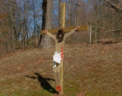 The Crucification as depicted at Slate Church, Today in the Christian world we celebrate the life, death and resurrection of Jesus Christ, many will say the most important figure in the history of mankind. Some regard him as a fanatic, a figment of spiritual convenience, the son of God or a martyr who came to failure, grief and ruin after a stormy career as he reached out to the masses. Those who are believers look upon Him as the central figure who forever changed the course of human history. Jesus, the man-figure, walking, teaching and preaching, he gave us the greatest of lessons - why we yield to temptation, our very nature and why we make mistakes. But most of all he taught understanding, acceptance and forgiveness. He spoke for and embraced the outcasts, ignored and down-trodden, "the least of these my brethren." In a world that rushes to war and violence, He was and is the Prince of Peace - although his life has been intoned as supporting "wars of the righteous." He brought hope of rising above and living beyond that which exceeds human knowledge, experience and expectation, that we might overcome our self-made misery. - Bob Weaver