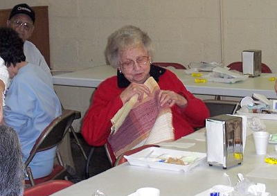 Emma Deel won the door prize, a beautiful rug