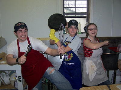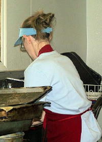![]() Asst. manager, Anita West (L) cooked as Cindy Shrader waitressed. Bonnie Bailey (R) struggled with her first time on the cash register