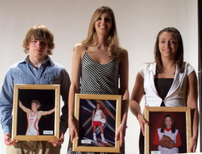 ![]() The 2007 Most Valuable Players (left to right) Samantha Wilson (Cheerleading); Eddie Burrows (Wayne Underwood Award); Cody Clark (Wrestling); Dani Church (Lady Red Devil Award, Basketball, Softball); Courtney McKown (Volleyball); Jeff Goodrich (Football, Baseball); not pictured Zach Moore (Boy's Basketball) and David Lee (Cross Country) About 100 Calhoun High School athletes were recognized Friday night at the All-Sports Banquet at CM-HS. The athletes, with parents, coaches and supporters enjoyed a banquet dinner prior to the awards ceremony. Athletic Booster president Kelley Houchin recognized the dozens of volunteers who have donated energy to support the school's athletic programs.