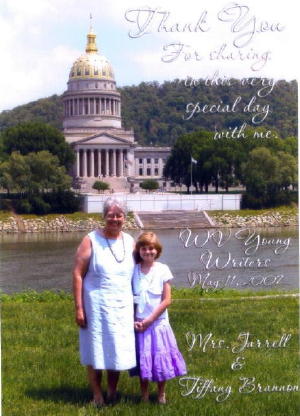 ![]() Submitted by Tammey Webb The West Virginia Young Writers' Celebration was held at Riggleman Hall in Charleston on May 11. Jan Jarrell, a second grade teacher at Arnoldsburg Elementary School and Calhoun County's first place Young Writers' winner, Tiffany Brannon were among the guests for the day. Tiffany is a fourth grade student at Arnoldsburg and a very talented young lady. Tiffany and Mrs. Jarrell participated in a Young Writers' Workshop and enjoyed the Keynote Speaker, Belinda Anderson, a West Virginia Author. Lunch was served and an awards ceremony was held to honor State and County winners. Arnoldsburg Elementary School says, "Congratulations Tiffany! You have made us proud."