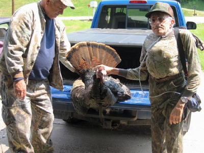 ![]() Roydice Williams (R) with hunting buddy Larry Morton Roydice Williams bagged a 20 pound turkey, Tuesday, May 15th. The bird had a 10 1/2" beard. "Overcoming many life-threatening medical problems, we are thankful that he can still hunt with his buddy, Larry Morton," said Roydice's wife Sue. |