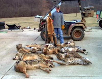 ![]() Sixth-grader Cole Vineyard displays his seven trapped coyotes Cole Vineyard, a sixth grader at Calhoun Middle School, has lowered the estimated 50,000 coyote population in West Virginia by seven. Young Vineyard, son of Earl and Julie Vineyard of Arnoldsburg, trapped seven coyotes during the November to February season, then froze them. Vineyard said he runs his traps, with the help of his dad, before he goes to school. "They're really smart, can smell human scent," he said, requiring him to wear rubber gloves and cover the traps well. "I've caught a lot of foxes, raccoons and 'possums," he added. A biologist with the US Department of Agriculture says that to reduce the state's coyote population, hunters would have to kill roughly 37,000 animals every year for at least 30 years.