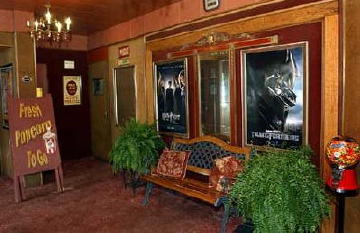 Robey Theater owner Aaron Richardson sits in According to Richardson, then-owner Mike Birch had run both the movie house and the video store for two decades. He wanted to pass it on to someone else. "Birch wanted someone he could trust," Richardson said. In 2004, Birch agreed to lease, then to sell the building to Richardson. Rogers got involved a short time later. The two had been friends since high school. "I had just finished nursing school when he asked me to come work for him," Rogers said. "He was putting in 40 or 45 hours in the video store every week, then putting who knows how many hours up front. It was just too much. So, I took [the store] over." Both men agree the Robey needs work. One hundred years has taken its toll on the building. The boarded floor creaks. The threadbare carpet is stained and during the '90s, the roof leaked. Rainwater streaked the walls and damaged some of the second floor. The equipment is a hodgepodge of the 20th century. The projector is 50 years old. Most of the wooden seats are 70 to 85 years old. Some of the heating is from a vintage 1910 gas heater. "It's the only place in the state you can watch a movie in front of an open flame," Richardson joked. "It works, but I don't turn it on."