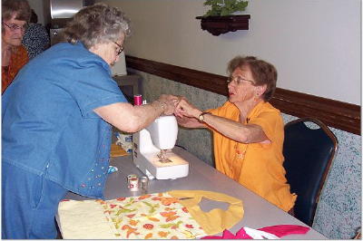 Mary Umstead demonstrated making clothing protectors for MHHS