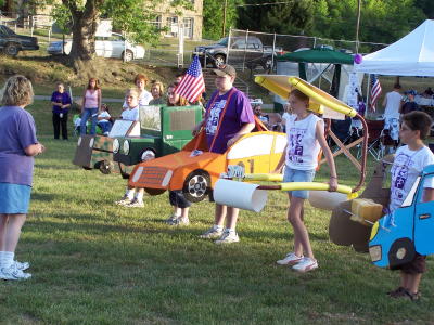 Vehicle "race" was one of many events It was a celebration of Hope, the annual Relay for Life event Saturday evening at Wayne Underwood Field, with dozens of cancer survivors participating in the survivor's walk and the lighting of luminaries in memory of hundreds of Calhoun residents who succumbed to the disease. After having the event inside for the past few years because of weather, Barb McKown said "It was delightful to have it outside, again." Saturday's event kicked-off at 6 p.m., lasting until 1 a.m. Sunday. Relay for Life, besides being a fundraiser for the battle against cancer, was an opportunity to celebrate life with friends and family from across Calhoun and surrounding counties. The evening was filled with fun events, music, lots of walking and of course, special memories.