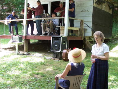 ![]() Randall Whytsell, with the help of Marvin and Peggy Whytsell Stemple, held one of his several community get-togethers (including the Whytsell Reunion) this past weekend at the Whytsell Park between Rocksdale and Richardson, shown here (sitting) Juana Moore and friend listening to Randall's musical friends.