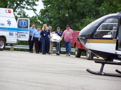 ![]() A Mt. Zion man fell from a collapsing TV tower yesterday evening, reportedly suffering fractures of both legs near the ankle. Roger Jarvis, 59, was life-flighted by HealthNet from Calhoun Middle-High School to Charleston Area Medical Center, where he was undergoing surgery last night. Calhoun EMS and the Arnoldsburg Volunteer Fire Department responded to scene at the intersection of Sycamore Rd. and Rt. 16 at the top of Millstone Hill. |