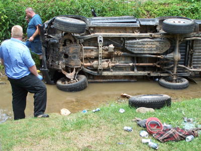 ![]() The driver of a Toyota truck that crashed into a creek bed about noon yesterday quickly fled the scene. The vehicle was traveling north on Rt. 16, Phillip's Run, near Grantsville when it went out of control, went through a yard and landed on its side in the creek. Dozens of beer cans flew from the vehicle when it crashed. Calhoun EMS and the Grantsville Volunteer Fire Department responded to the scene. |