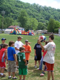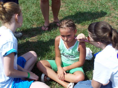 ... along with several face painting sessions A Youth Group from Dudley Shoals, North Carolina was at Wayne Underwood Field Saturday for Youth Game Day, sponsored by Grantsville's First Baptist Church. Music was provided by Uth Band, with volleyball, flag football, 3 on 3 basketball tournaments, and a giant inflatable obstacle course. Kids received lots of prizes and free food. The church had a picnic at the County Park on Friday evening to welcome the visitors and the men of First Baptist Church prepared breakfast for the youth group.