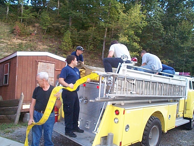 ![]() It was a "shaping up" kind of training night for the Grantsville Volunteer Fire Department Monday evening. Firemen spent most of their time testing fire hose using a pressure testing apparatus, and then replacing the hose on the trucks.