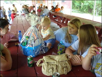 ![]() Front L-R - Virdis and Jean Groves Marks family of Philo Ohio, their daughter Teresa Rutledge; Back L-R - daughters, Valerie Senig and Jeannie Skaggs, and son, Vernon Marks. This was the first time the family got to attend the annual reunion. Jean was a daughter of Theodore Groves of Crooked Run, Orma and she is a sister to Thelma Hall Submitted by Janet Marks The annual Marks-Poling reunion was held Saturday, July 21 at the Mt. Zion Community Park. A covered dish dinner, auction, games, fun and fellowship was enjoyed by all who attended.