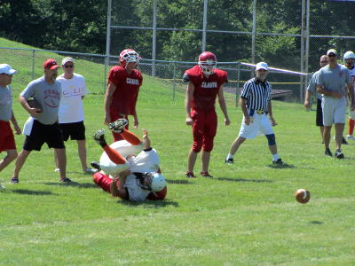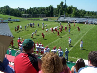 The Calhoun Red Devils had a scrimmage with Richwood Saturday under the scorching sun. A second scrimmage is next Friday night at 7 p.m. (Aug. 17) with Paden City and the first official game with Gilmer County is on August 24, both at home. Friday (Aug. 17) is also "Meet the Teams" night beginning at 6 p.m. All fall sports teams will be introduced, cross-country, high school and middle school volleyball, varsity and middle school football. The Red Devil band will also be introduced.
