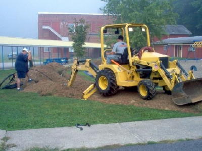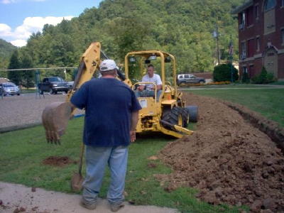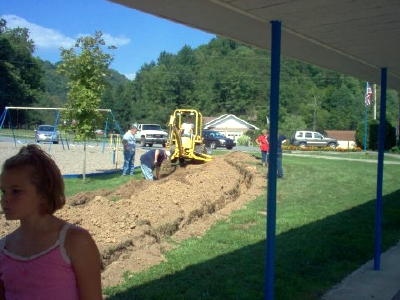 After months of official in-action, a late summer effort to close Normantown Elementary School and transport students to Glenville because of a mold problem, ended with parents and community members organizing and working to save the community school. Parents and community members assembled for a work weekend to help prepare for a mobile classroom that has now been placed at the school. Volunteers helped prepare two ditches, one for the water and another for the sewer. Misty Pritt, a community volunteer and Challenge WV fellow said "We were fortunate to get a ditch witch donated, along with the fuel needed to operate it from Mr. Billie Houchin of Arnoldsburg." The pipe needed to hook-up the mobile classrooms was donated by Flying W Plastics of Glenville. All the fittings and electrical wire needed was donated generously by Appcon, and Hardman's, both located in Glenville. Grass seed and straw for mulching was donated by Mr. Frank Minney and Sears Exxon in Stumptown provided bottled water for the volunteers throughout the weekend. The volunteer work crew consisted of Dennis and Amie Carder, Richard and Misty Pritt, Brian and Lisa Moore, Lisa Tanner, Justin Carter, Mike Wellings, and Patty Singleton. "We were able to get both ditches dug, the pipe laid, the ditches covered, and the ground seeded and mulched within the two day period," said Pritt.