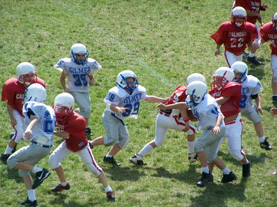 Calhoun's Little Red Devil's youth football won two and lost one yesterday afternoon in their homecoming play with Gilmer County at Mt. Zion. A Team Gilmer won 22-12. B Team Calhoun won 24-18. C Team Calhoun won 22-14. Next Sunday the teams will play Wirt, away.