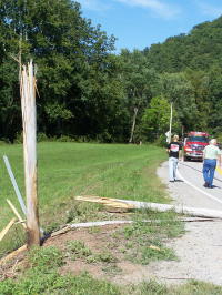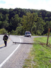 Downed and broken poles and cable in highway for several hundred Grantsville firemen dutifully flagged traffic for over four hours waiting for a Frontier Phone pole truck to arrive from St. Marys. Local Frontier workers can not provide the service. Deputy Justin Metheney and Trooper 1st Class Jeff Hunt responded to the accident. A White Pine man, reportedly about 65-years-old, was taken to Minnnie Hamilton Health System by Calhoun EMS after his vehicle went 100-150 feet over a hill. The Grantsville VFD and Deputy Justin Metheney responded to the accident at 1:48 p.m. Trooper 1st Class Jeff Hunt and Calhoun EMS responded to what appeared to be a truck going over the hill near the intersection of Pine Creek Rd. at Mt. Zion, Rt. 16. The driver left the scene in the vehicle. An eight-year-old girl was bit on the head and face by a dog at 5:27 p.m. at a residence along Rt. 16, just south of Arnoldsburg. Calhoun EMS responded to the scene and took the youth to Roane General Hospital, reportedly suffering from lacerations and a puncture wound to the face. |