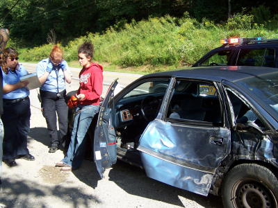 ![]() EMS personnel assist Ohio woman, a victim of the sharp Carroll Turn Calhoun had three vehicle accidents yesterday, sending only one person to the hospital. A 1993 Buick driven by an Ohio woman failed to negotiate the sharp Carroll turn on Rt. 5 near Big Bend, knocking a telephone pole and cable into the highway. Calhoun EMS responded to the scene with the Grantsville Volunteer Fire Department at 3:25 p.m. The woman declined medical care.
