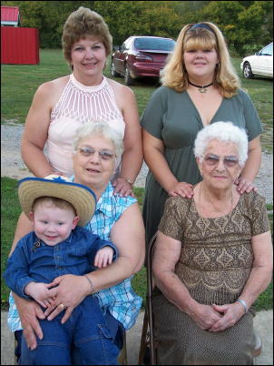 FIVE GENERATIONS (Front L to R) Laura Thompson, Infant Charles Lynch (18 months), Violet Mellot, 84 (Back L to R) Pat Lynch, and Victoria Lynch, all of Arnoldsburg, come together for the 2007 Octoberfest