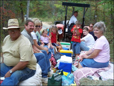 Members and friends of the Full Light Gospel Tabernacle at Big Bend went on a real backwoods hayride Sunday, starting at Big Bend, traveling on the Kadie's Run Rd. to Sixteen Ridge and crossing the LK River at Munday Beach