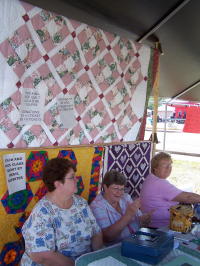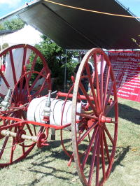 Display of fire hose unit by Elizabeth VFD - quilts being raffled |
