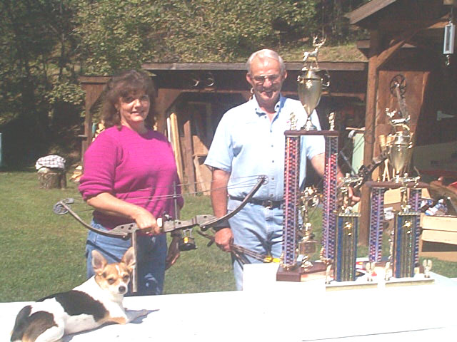 ![]() The 2001 trophies are brought out The third annual King of the Hill Bowhunter's Tournament was held at Little Leatherbark Archery near U.S. 33-119 on September 23. Top six shooters and one recurve in shoot off are as follows: Dan Wilson, Monty Roupe, Dave Fulks, Pete Casto, Scott Farar, Jackie Strickland, Stacey Buchanon (Recurve) Winners were, 1st place - Jackie Strickland, 2nd place - Monty Roupe. |