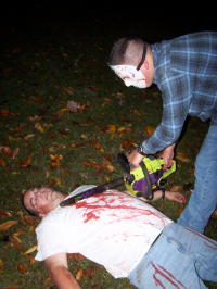 A Haunted Trail of chilling scares greets visitors to County Park Ghosts, goblins and ghouls greeted visitors to the Haunted Trail last night at Calhoun Park. There were lots of special effects, from flying ghosts to a chainsaw massacre. The event is being sponsored by Calhoun EMS. Visitors go to the first shelter, a right turn, up the hill to commence the walk, which includes a guided tour with a storyteller. The trail is open tonight from 7 to midnight. Admission is $2 for adults and $1 for kids under 12. Concessions will be sold, hots dogs $1, hot chocolate and coffee 50 cents.