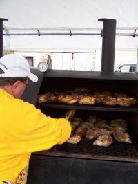 Jim Sullivan perfects the chicken (left) while There was a number of special events throughout the day and evening, including a Chicken Bar-B-Q and Halloween costume parade. An auction benefited the Coleman and Katheryn Burrows Memorial Fund.