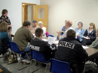 A public meeting was held yesterday evening at the Calhoun Courthouse to explore a Central Alternative Sentencing Solution (CASS) to reduce jail costs, shown Project Director Shari Johnson (far left) discussing details of the proposal
