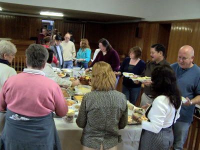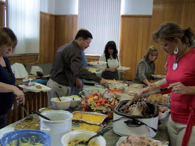 County and town employees and elected officials came together yesterday in the Calhoun courthouse for the annual Thanksgiving dinner