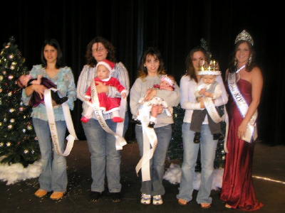 ![]() Baby Miss Snowflake (L-R) 1st Runner-Up Sydni Frederick, 2nd Runner-Up (tie) Kendra Davis; Baby Miss Snowflake Kelsey Snider, Baby Mister Snowflake Kayden McCormick and Queen Flora 2007 Amie Carilli