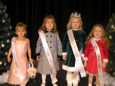 Toddler Miss Snowflake (L-R) 1st Runner-Up (tie) Kiley Murphy, and Hannah Newell, Toddler Miss Snowflake Tori Arnold, 2nd Runner-Up Sara Dennis