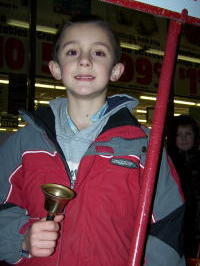 SALVATION ARMY RINGERS - Young bell ringers in front of Grantsville's Foodland, Matthew Chase (L) and Jacob Butler (R)