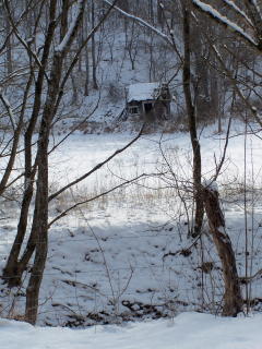 A falling down shanty along Nicut (left) with It will be cold this morning in Sunny Cal, likely hovering just about zero along the creeks and about five degrees elsewhere. It's so cold it could freeze the brass parts of a monkey's anatomy, or part of a witch's anatomy, or part of a well-digger's anatomy. The good news, a warming trend is coming, likely to push the temperatures in the 60s next week. |