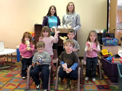 ![]() Sorority sisters present "Boo-Boo Bunnies" to children Submitted by Jim Sullivan Amanda Lay and Mica Seman of Marietta College's Alpha Xi Delta sorority stopped by Minnie's Rainbow Day Care Center to deliver "Boo-Boo Bunnies" to the children recently. The Center is located at Minnie Hamilton Health System in Grantsville. The ladies gave each child a bunny, made of a washcloth and decorations. Ice can be placed inside the bunny creating a cold compress. Ms. Lay explained that the sorority's philanthropy is "Choose Children." Each year, the ladies raise money for various children's charities. This year, during recruitment, each individual that came through the door made a bunny to be distributed. The ladies enjoyed allowing each child to pick their favorite color. "This is the best part, making the kids happy," they said.