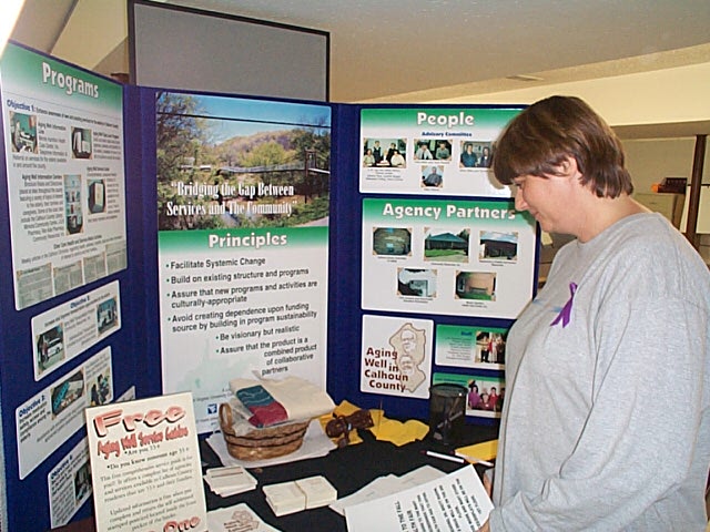 ![]() Kelly Grogg, coordinator The Aging Well in Calhoun County Health Fair, held with the cooperation of the local Senior Center, had 112 participants yesterday, according to Kelly Grogg, Special Project Coordinator. The fair had 25 exhibitors. |
