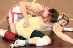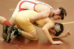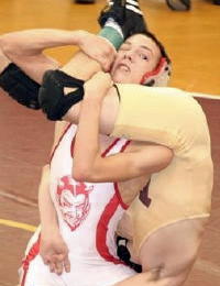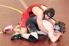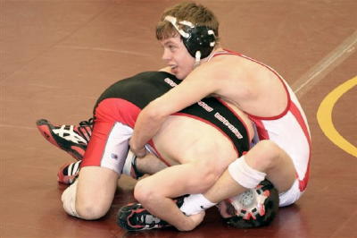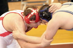 Sean Gungle (left) Zac Hanshaw (right red-white) Submitted by Penny Yeager Calhoun County High School wrestlers participated in The Bob Zide Williamstown Rumble on Saturday January 26. Calhoun placed 1st in the 10 team rumble. Ben Laughlin received the award for Outstanding Wrestler. Calhoun individual winners were: 1st place - 112 lbs. Nick Stevens, 135 lbs. Ben Laughlin, 145 lbs. Aaron Yoak. 2nd place - 125 lbs. Sean Gungle, 130 lbs. Cody Clark, 215 lbs. Zac Yeager. 3rd place - 103 lbs. Zac Hanshaw, 160 lbs. Caden Arnold, 171 lbs. Tim Sutro. 4th place - 119 lbs. Austin Moore, 152 lbs. Jeremy Conley.