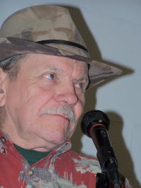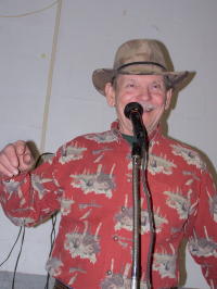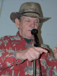 Charlie McKown telling a tall tale By Bob Weaver Saturday night was the annual Bear Fork "Critter Dinner" at the Arnoldsburg Community Building. Perhaps the biggest treat is Charlie McKown taking the stage to tell some wild and crazy hunting and critter tales. Bear Fork Hunting Club has sponsored the wild meat banquet for several years, which generally brings out hundreds of folks, members of the club and their guests. The meat menu, besides the usual country cookin' fare, often includes everything from bear and buffalo to groundhog and rattlesnake. Of course, lots of deer meat. Area musical groups performed for the audience. The club currently leases about 13,500 acres of the deep and dark woods, one of the most remote areas in the region.