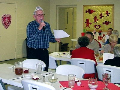 Wearing his blinking crown, Don McCartney Submitted by Sue Oshoway The Third Annual Valentine Dinner sponsored by the E-Lemonade-ors Relay For Life Team was held last Friday at Grantsville First Baptist Church. Several folks attended and enjoyed a delicious menu of, baked steak with all the trimmings, red velvet cake and drinks. Baby sitting services were provided and pictures taken, there was lots of entertainment and door prizes given. Proceeds from the event go to the American Cancer Society's Relay for Life. 'Cruisin' for a Cure' Calhoun County's Relay for Life 2008 is set for Saturday, June 21. This year is the 10th anniversary of Relay for Life in Calhoun County.