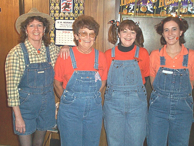 ![]() L to R: Trish Deweese, Laura Butler, Kelly Mullens and Kari Bourne The "Y" Restaurant waitresses and workers got "dressed-up" for Halloween yesterday, waiting on their customers in hillbilly fashion. The restaurant is at the intersection of State Route 16 and U.S. 33-119 at Arnoldsburg, and is a popular eating spot in southern Calhoun. |