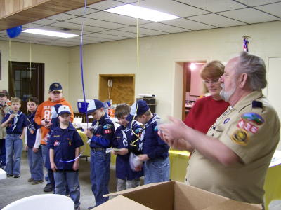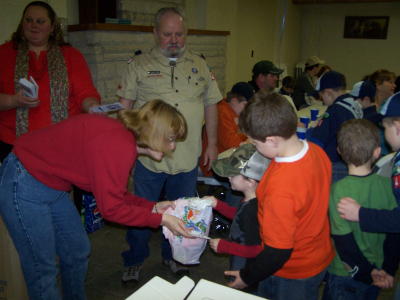 Scouts and families recognized with special Calhoun's Cub Scout Pack 436 held their annual Blue and Gold Banquet Thursday night at the First Baptist Church in Grantsville. Scoutmaster Paul Funk said he was excited by the local pack's increased numbers. Following the dinner, scouts were recognized for their accomplishments and given prizes, savings bonds, walkie-talkies, cash and gift certificates donated by area businesses and individuals.