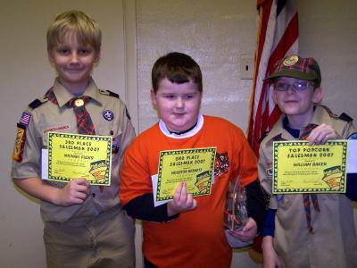 Top popcorn salesmen during annual fundraiser (L-R) Michael Fulks |