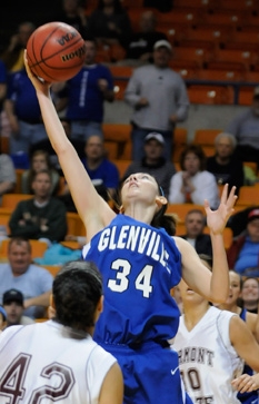 ![]() Miranda Reed drives the baseline. It's fitting the last point scored by the team during the 2007-08 season was also the last shot Kendrick took as a Lady Pioneer. It would have been fine if that last shot would have been the winning shot of the championship too. At the buzzer Fairmont had a 5-point advantage 67-62. Donita Adams was the team's leading scorer with 25. Mallory Menendez was the only other Lady Pioneer in double figures with 10. Kendrick had nine. This season was a victory of a different kind The 2007-08 Lady Pioneer women and coaches worked together and overcame adversity. It's the kind of "life lesson" they won't forget and no lecture can teach. For example, last year, the Rachel Redick led team literally had a much easier time of winning. The overall talent pool was deeper, the team was more mature, and they intimidated nearly everyone who stepped on a basketball court with them. A weakness Glenville has had all season is not enough players who: (1) are quick enough, and (2) comfortable driving to the basket in traffic. As a result Donita Adams was the primary player who could open up the inside. Consequently, the Lady Pioneers relied heavily on back-court shots. Glenville relied heavily on the "dead-eye" 3-point shooting of Mallory Menendez. However, she suffered a minor knee injury within the past few weeks. The numbers indicate the injury affected her scoring ability. Senior Karina Kendrick nailed 18 double-doubles for the season. Imagine what she may have done had she not been physically compromised with a staph infection much, if not all season. Mallory Menendez proved to be an "ace" from the outside, having a seeming dead-eye from any range. Menendez is also one of the best ball-handlers on the team. She also understands the game, and there's no guesswork when she's working the court. Miranda Reed's confidence, shooting, and ball handling ability continued to improve all season.