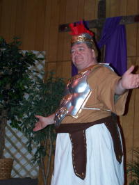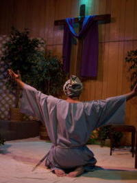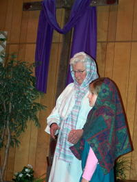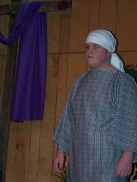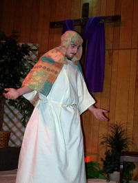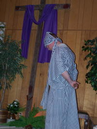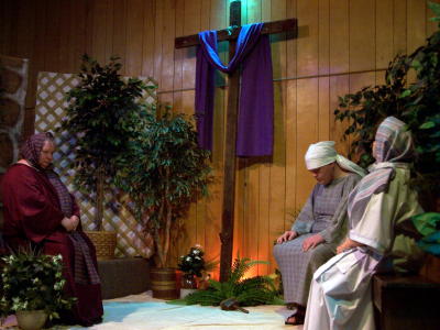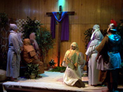 Members of the Pleasant Hill United Methodist Church presented "A Picture of Calvary" Saturday evening, bringing to life the events surrounding the crucification of Christ. The cast of fifteen characters appeared before the congregation with a miniature passion play with music and lighting, including performers, Bobby Swisher, Judas; Lou Norman, wife of Pilate; Dale Cunningham, Caiaphas; Edna Robinson, Mary Magdalene; Patrick Summers, Nicodemus; Jim McCormick, Thomas; Michael Radabaugh, Peter; Grace Richards and Carissa Yoak, mother and child; Mary of Bethany, Marcia Swisher; Drew Metheney, the Apostle John; Dorothy McCauley, Mary, mother of Christ; Shannon Anderson, Paul; and Jim Sullivan, the centurion. Rev. Richard Metheney was the narrator. The play will be repeated at 10:45 a.m. Easter Sunday morning. The church is also having Sunrise Services at 6 a.m. with breakfast to follow.