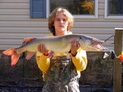 Sugar Camp resident Caleb Schoolcraft caught this 41 inch, 18 pound Muskie yesterday in the Little Kanawha River just east of Grantsville