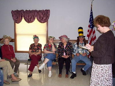 ![]() Submitted by Brenda McBride Senior Citizens enjoyed participating in the annual "Crazy Hat Day" held April 4th at the CCCOA in Grantsville. Judge for the contest was Sue Oshoway. The winners were, Funniest Sharon Sampson, Most Unusual Alta Mae Richards, Most Original Blanche Kendall, Prettiest Evelyn McCormick and Ugliest Jim McCormick.