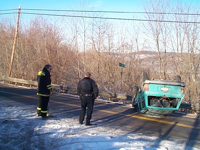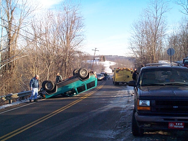 SMITH ESCAPES SERIOUS INJURY IN TOWN HILL ACCIDENT - Sports Utility Vehicle Crashes On Top |